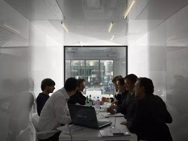 在這個乳白色光亮的倉庫內提升新的空間,讓一層層辦公場所更為寬闊。